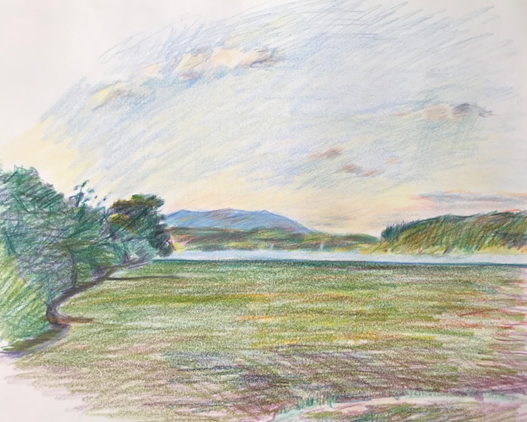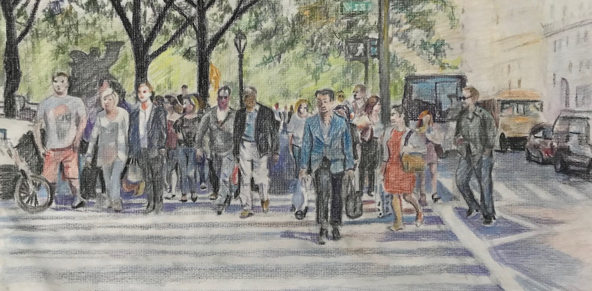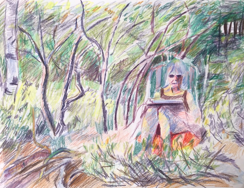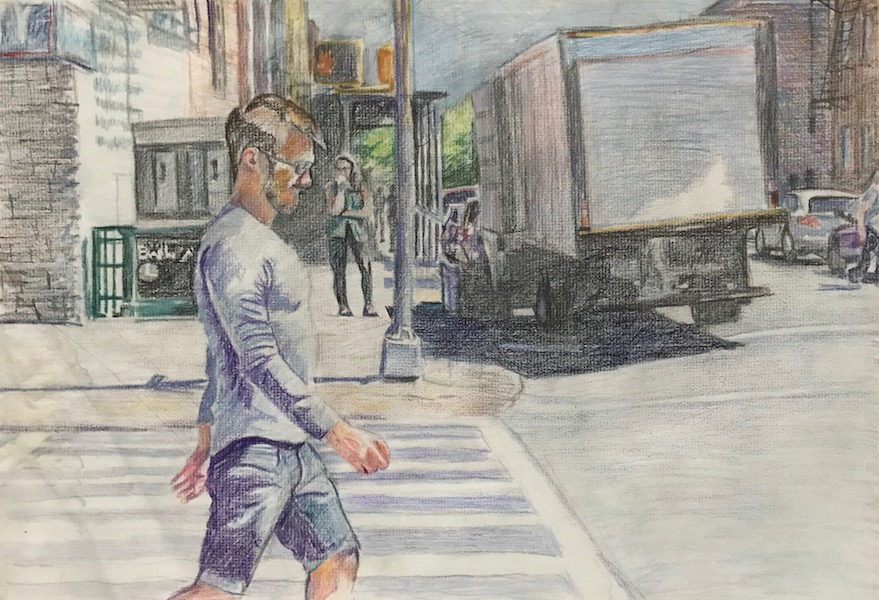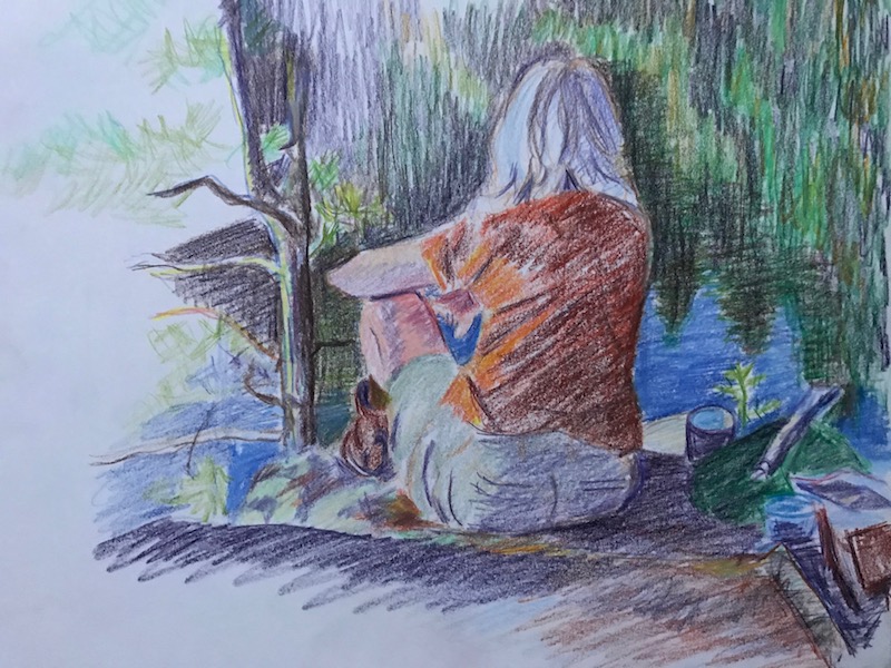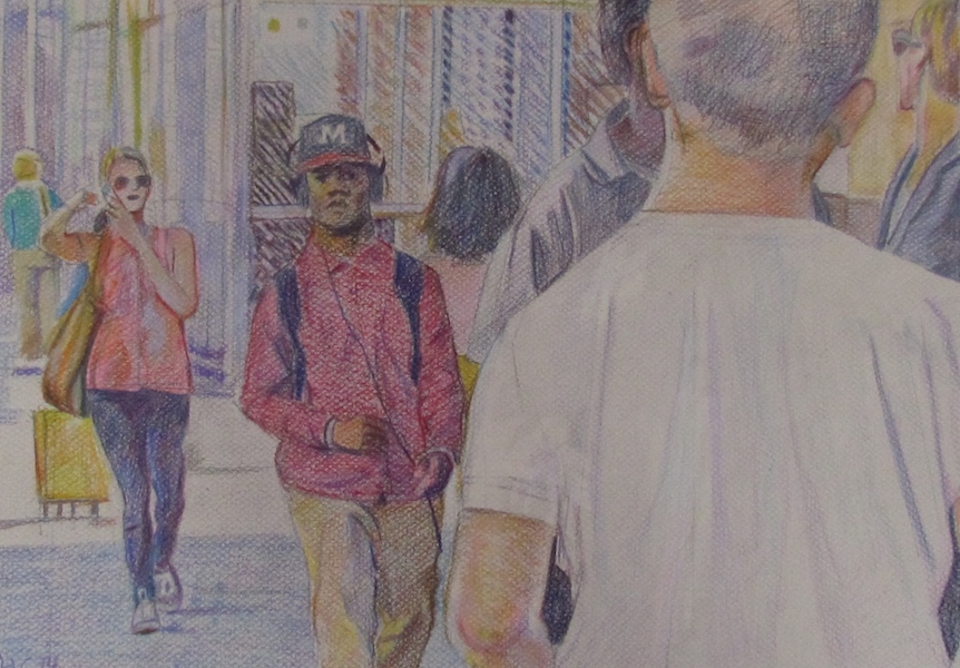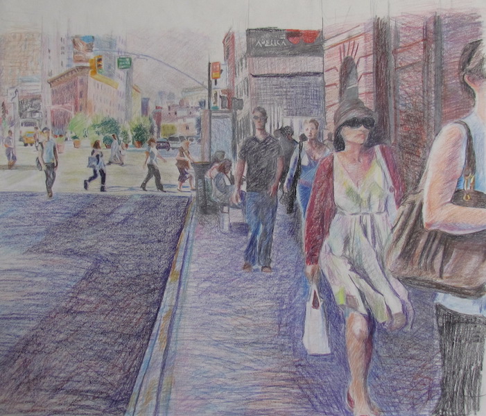 Colored pencil drawings Sarah at Hess PondSarah SketchingWoods at Seventh Lake BeachHudson River ViewUntitled Untitled Pedestrians in Front of Chelsea MarketSeventh Avenue in the VillageYoung Guy in WilliamsburgDowntown SidewalkLight Changing at 59th and FifthUntitledUntitled